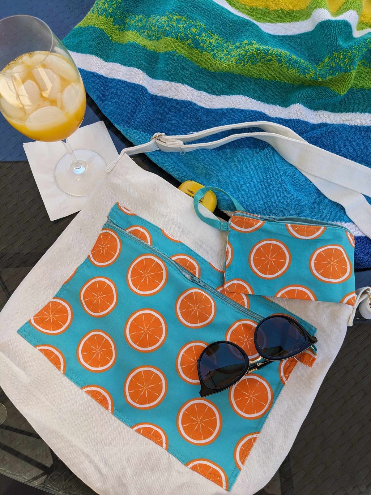 Headed to the beach, fun in the sun, or just out and about? Vibrant turquoise color with juicy oranges give this bag a refreshing look.